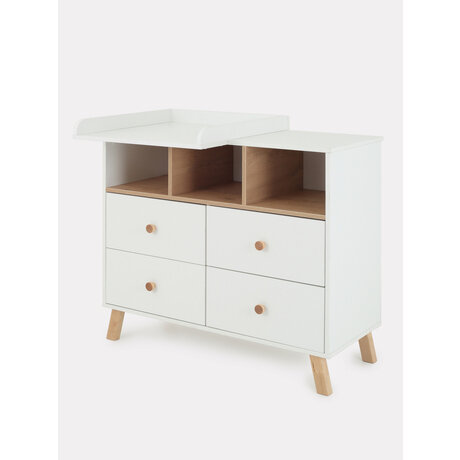 Габаритный пеленальный комод моментально впишется в ваш интерьер благодаря оригинальным деталям и эффектному исполнению. Особая геометрия комода выдаст в вас тонкого ценителя прекрасного. Комод дополнен бортиком, превращающим его в полноценный пеленальный столик. Бортик можно установить в двух положениях - слева и справа. Когда малыш подрастёт, бортик можно будет снять. Комфортная ширина комода позволит как переодевать малыша, так и хранить необходимые предметы гигиены рядом. Вместительная модель включает в себя 3 открытые полки для быстрого доступа к предметам гигиены и важным вещам. 4 просторных выдвижных ящика бесшумны - они не потревожат спящего кроху. К тому же ящики дополнены телескопическими направляющими, благодаря которым комод способен выдерживать большие нагрузки на протяжении длительного времени. Комод изготовлен из высококачественных и экологически чистых материалов. Обработан безопасными для здоровья младенца красками на водной основе.