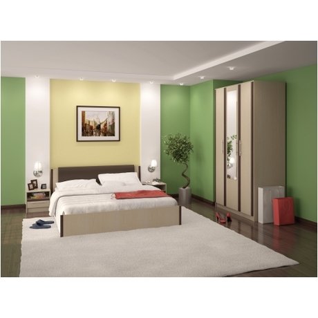 В состав набора входит: шкаф «Новелла» (1 шт), кровать «Новелла» (1 шт) и прикроватная тумба «Новелла» (2 шт).